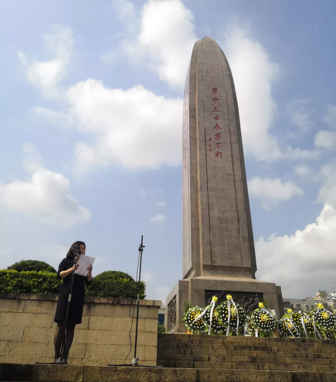 纪念活动开始前,支部委员会书记付灿华组织大家于纪念碑前集合列队,整理衣物,修缮面容,以沉重的心情、严肃的仪容仪表缅怀革命先烈。