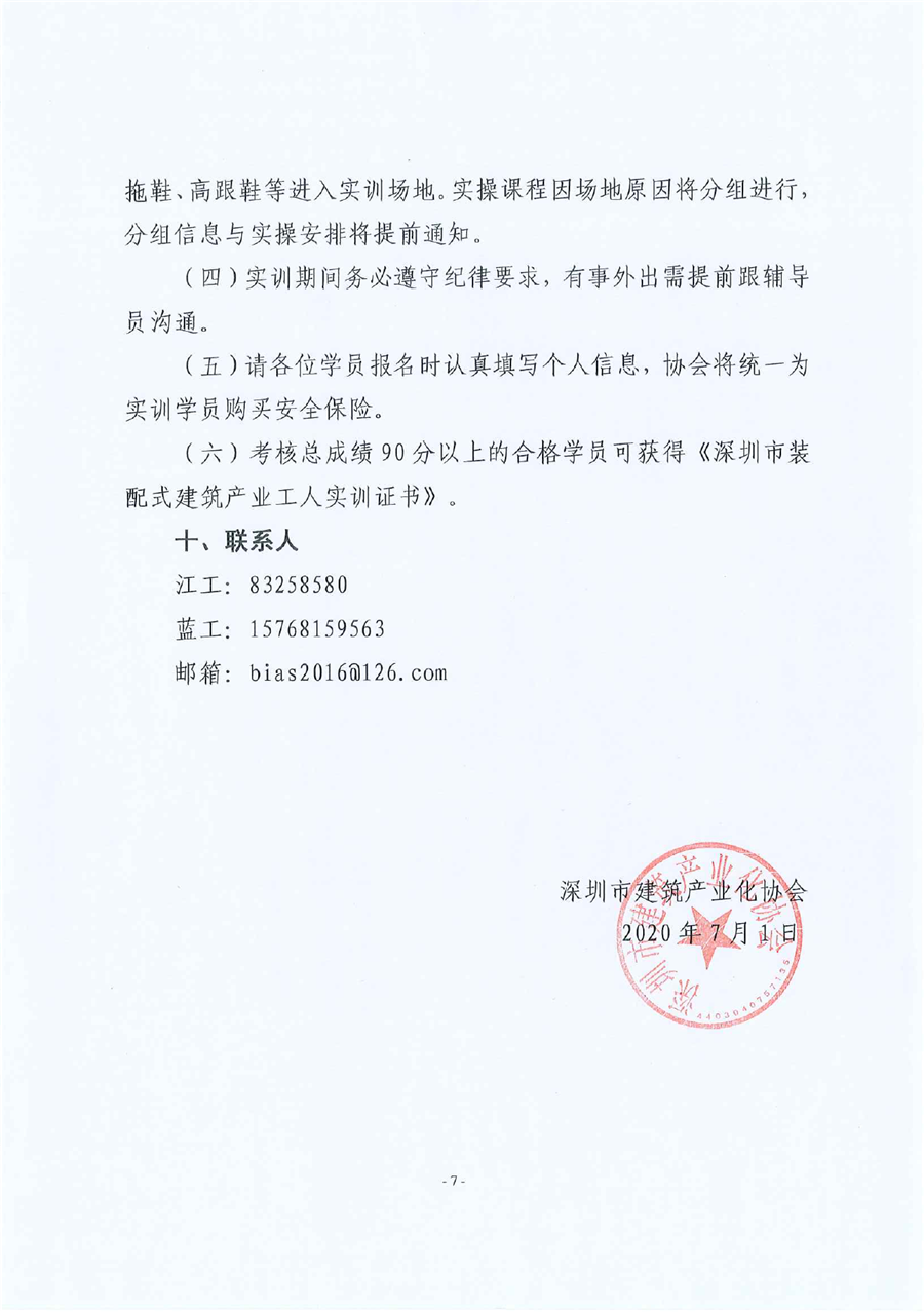 关于举办深圳市装配式建筑产业工人实训班(第十七期)的通知