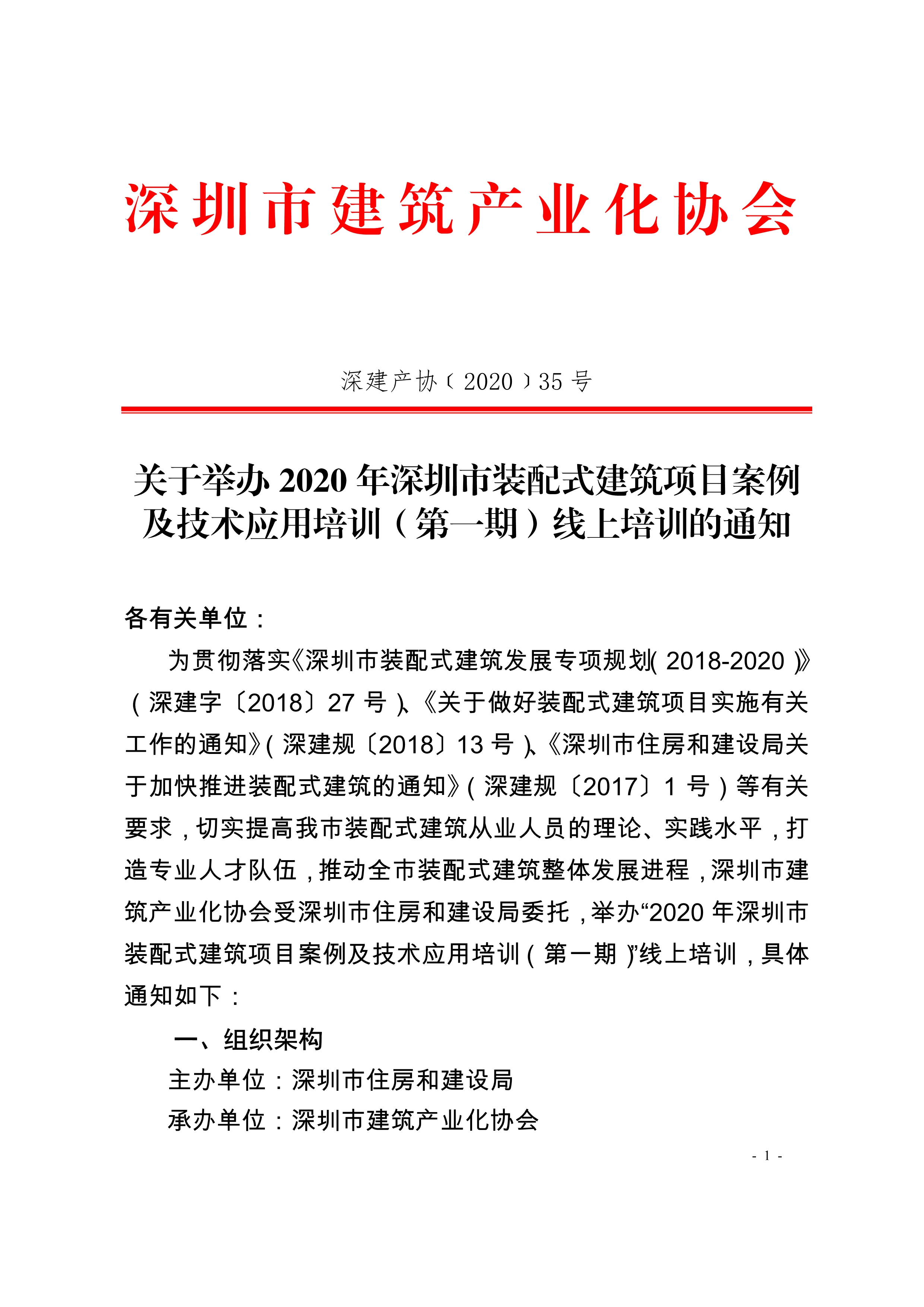 2020年深圳市装配式建筑项目案例及技术应用培训(第一期)线上培训的通知