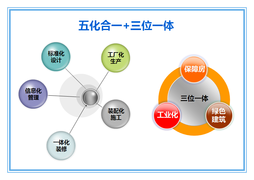 近年来,深圳市将住宅产业化提升至“打造深圳标准、创造深圳质量、铸就深圳品牌”的全新战略高度,形成了“政府引导+市场化运作”的双引擎推动模式,探索形成了 “五化合一”( 标准化设计、工厂化生产、装配化施工、一体化装修和信息化管理)整体解决方案,构成了可持续发展的住宅产业化的“深圳模式”。