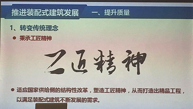 在交流沙龙中,王恩伟总经理就装配式建筑过程中如何“提升质量”和“降低成本”这两个方面做出了重要分享。他提出,建筑行业唯有完善制度、降低成本、保证品质,以装配式建筑促转型升级,才能实现中国建筑行业的日渐强大。