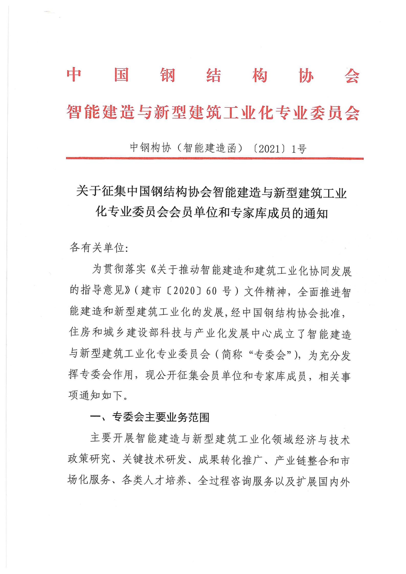 | 《关于征集中国钢结构协会智能建造与新型建筑工业化专家委员会会员单位和专家库成员的通知》-行业动态-深圳市建筑产业化协会、深圳装配式建筑网 - 深圳建筑产业化协会