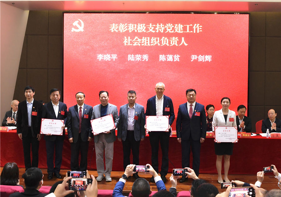会上,我协会党支部荣获“优秀基层党支部”等七项荣誉,陆荣秀会长荣获“积极支持党建工作社会组织负责人”;通过差额选举,我协会支部书记、秘书长付灿华当选为联合党委副书记。