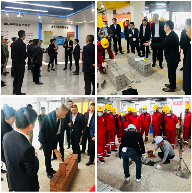 在学院负责人引导下,一行人重点考察了综合培训楼、专业性实训基地、安全体验馆等,并走进学员宿舍、健康驿站等配套设施。