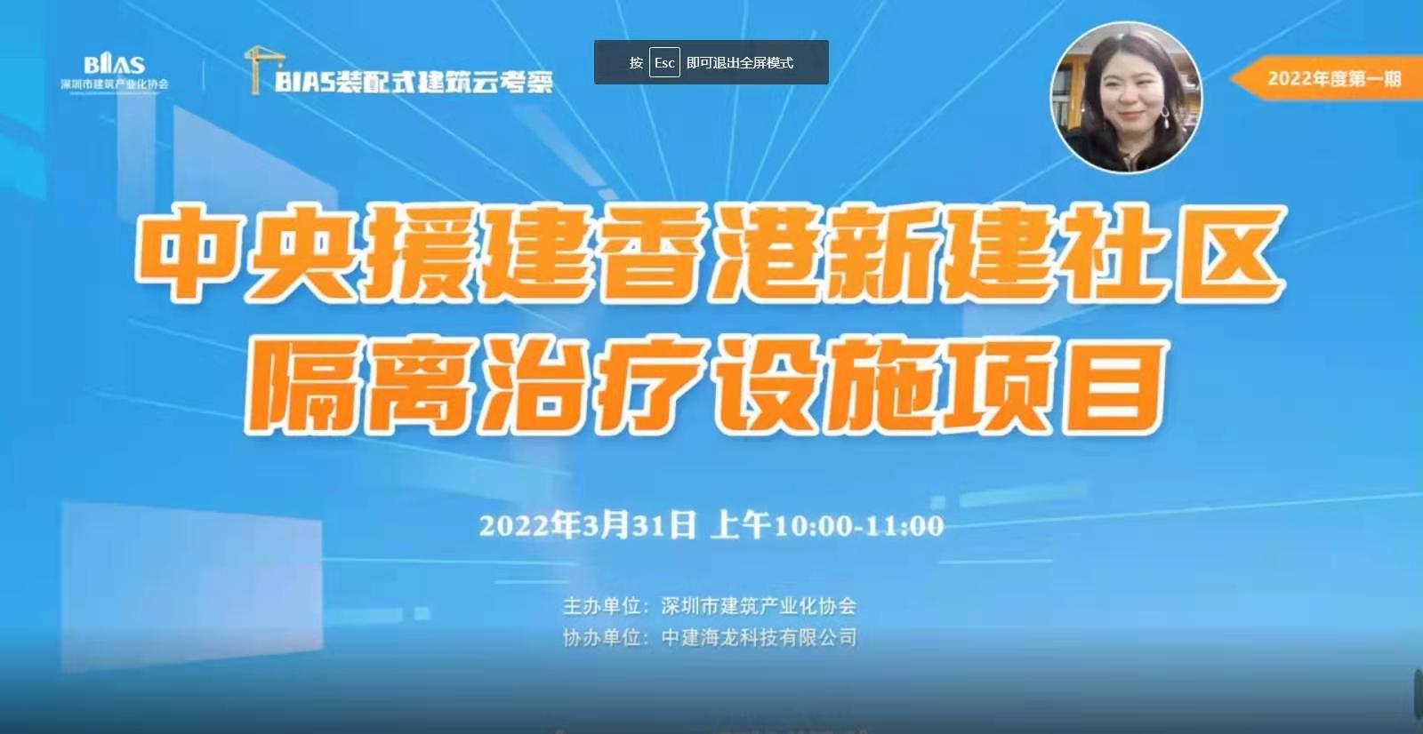 3月31日上午,由深圳市建筑产业化协会主办,副会长单位中建海龙科技有限公司协办的“中央援建香港新建社区隔离治疗设施项目”云考察活动在线上顺利举办。活动吸引了2410人次观看。