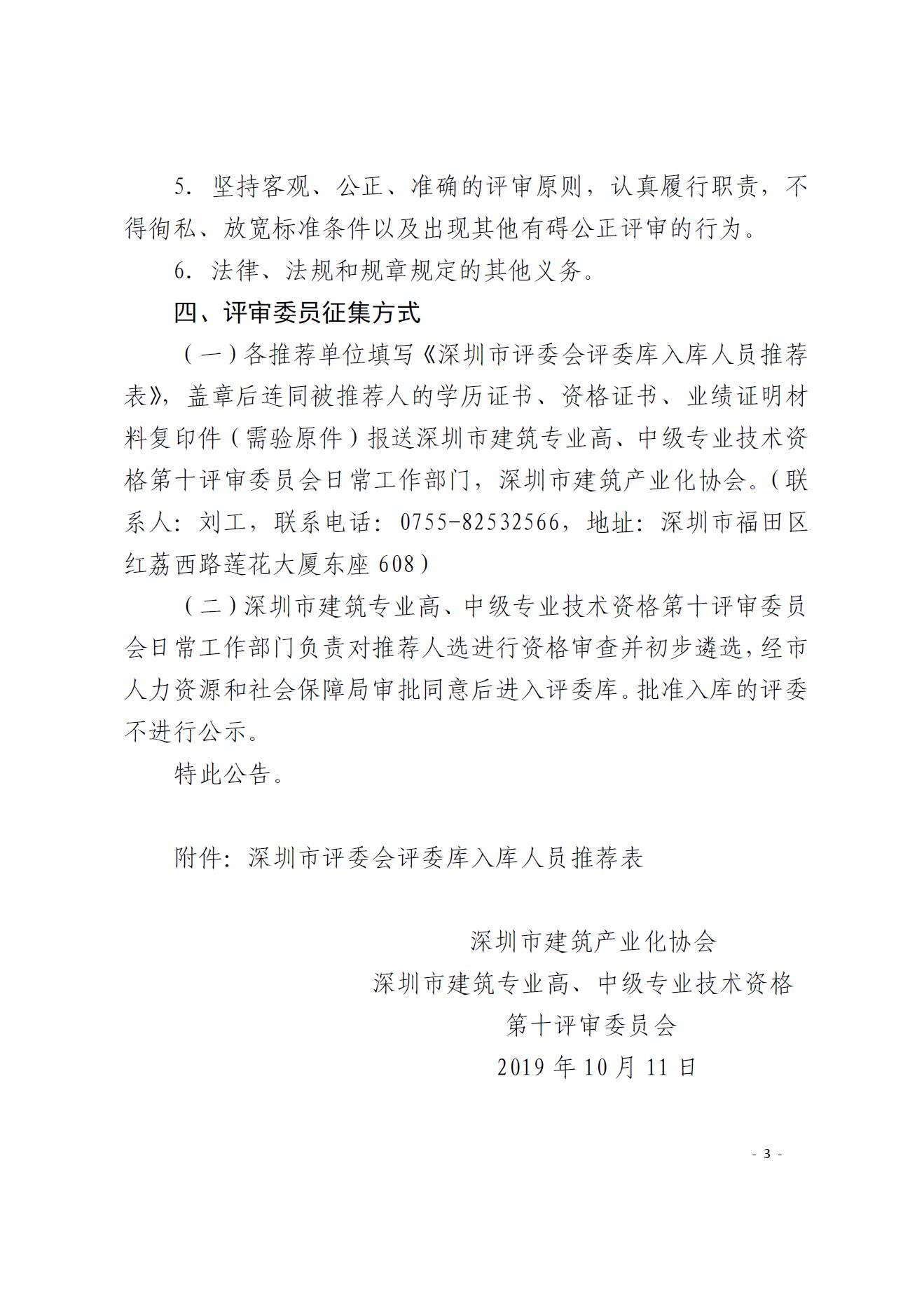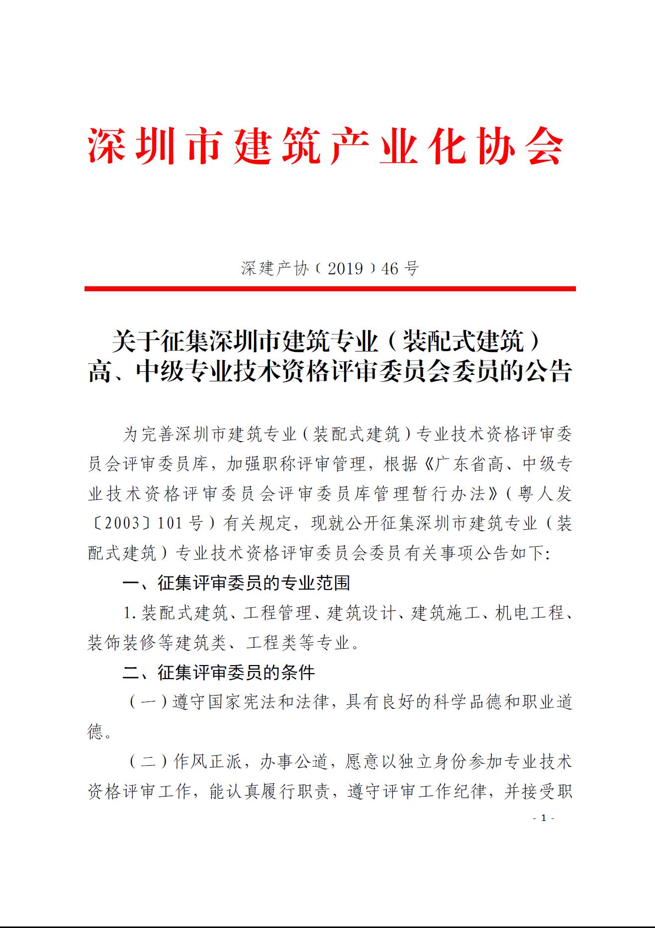 关于征集深圳市建筑专业(装配式建筑) 高、中级专业技术资格评审委员会委员的公告