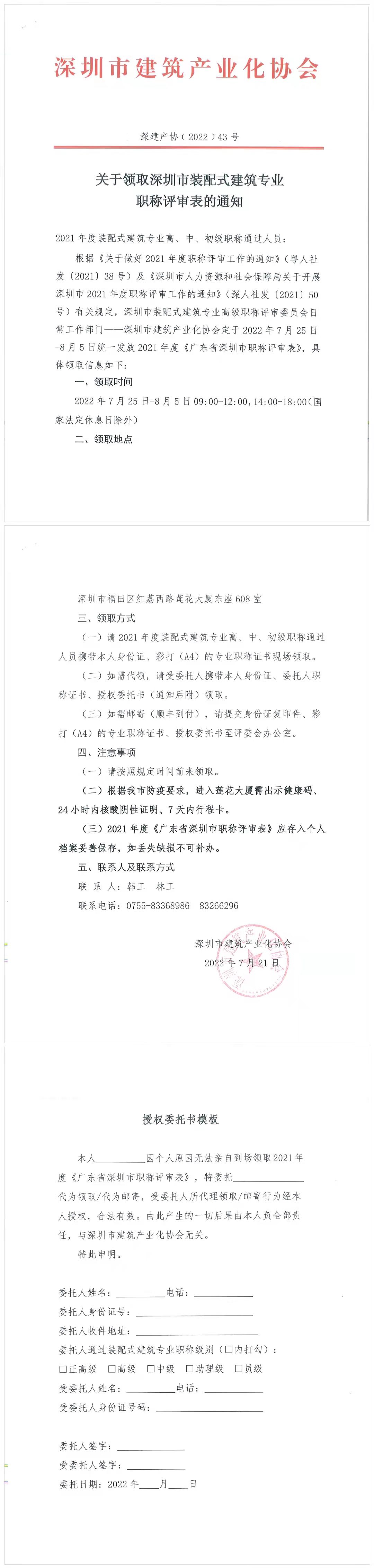 附件:领取《深圳市装配式建筑专业职称评审表委托书》