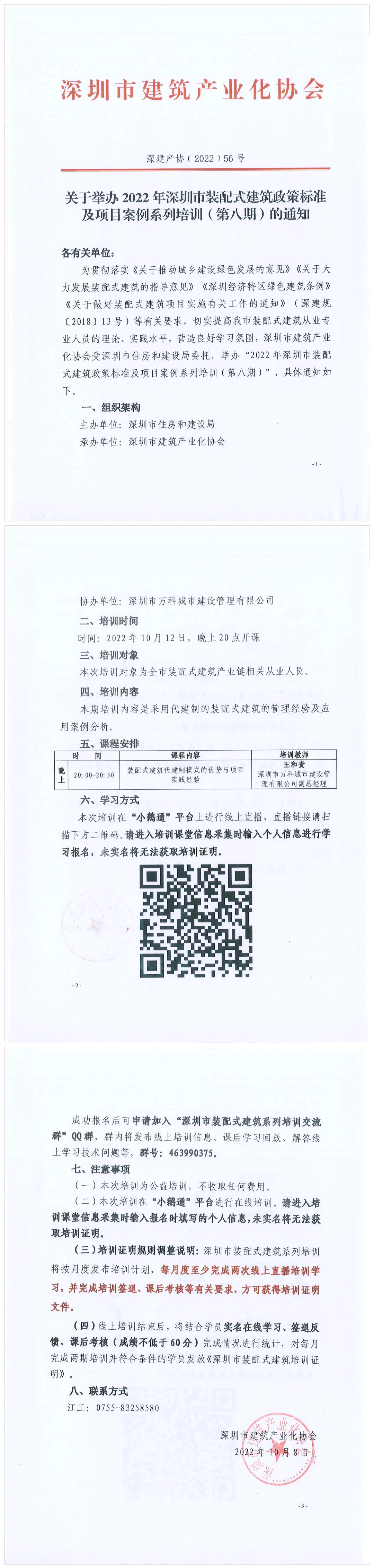 关于举办2022年深圳市装配式建筑政策标准及项目案例系列培训(第八期)的通知