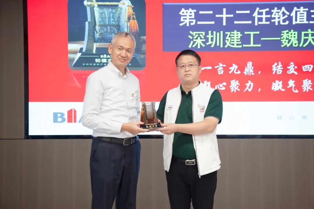 现任轮值主席履新致辞现任轮值主席魏庆国发表热情洋溢的履新致辞,他表示,轮值主席责任重大,意义深远,履职期间,他将代表所在单位,充分发挥主观能动性,依托协会平台、切实履职、真正为行业发展做出力所能及的贡献!为此,他代表深圳建工集团股份有限公司提出了装配式建筑产业工人职业培训机制的有关议题。