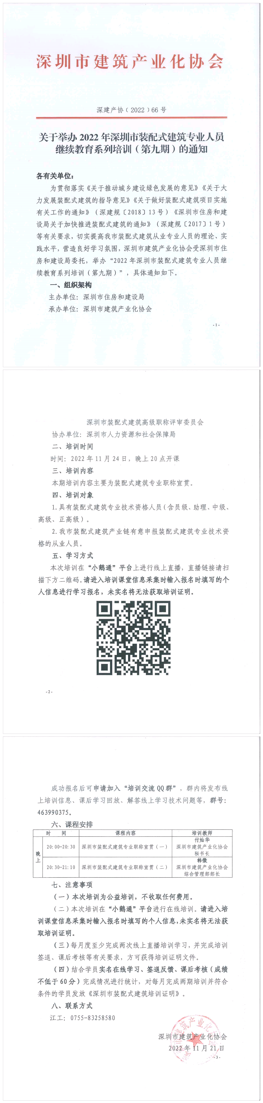 关于举办2022年深圳市装配式建筑专业人员继续教育系列培训(第九期)的通知
