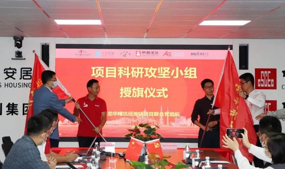 为进一步推进科技引领,中建海龙科技有限公司总经理赵宝军和龙华人才安居公司工程管理部部长、项目经理张磊共同为龙华樟坑径项目科研攻坚小组授旗,该攻坚小组在项目建设过程中发挥着不可或缺的重要作用,是一支有技术、有责任、有担当的科研队伍,授旗既是对他们工作的高度肯定,也是希望队伍能够继续能发挥所长,为项目贡献力量。