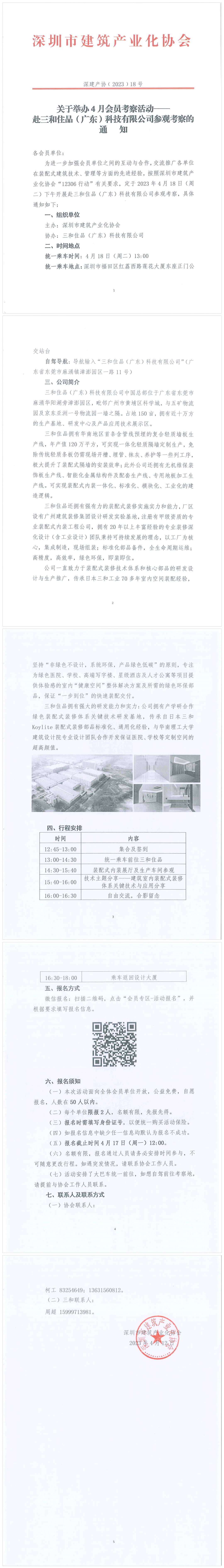 关于举办4月会员考察活动——赴三和住品(广东)科技有限公司参观考察的通知