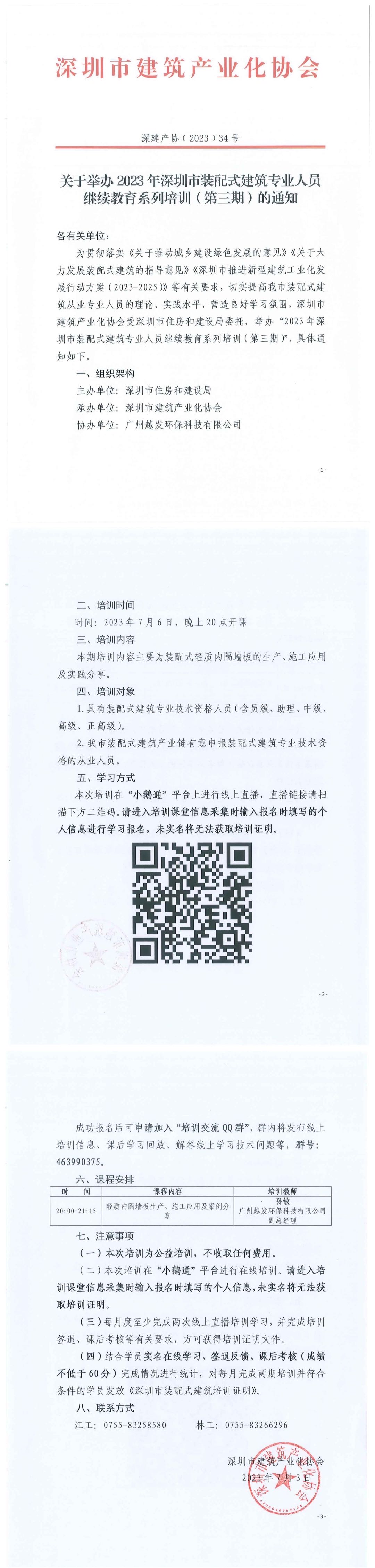 关于举办2023年深圳市装配式建筑专业人员继续教育系列培训(第三期)的通知