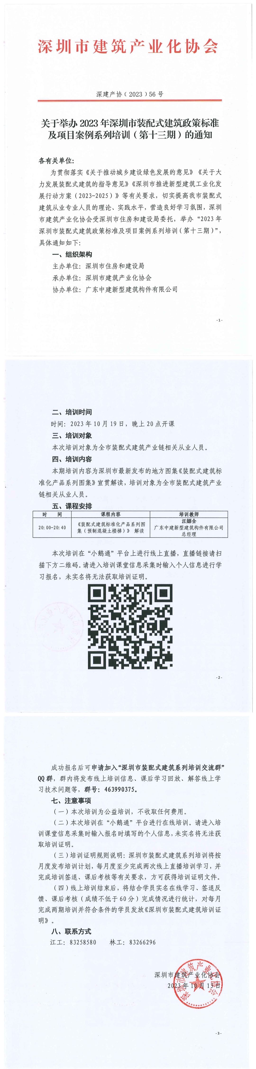 关于举办2023年深圳市装配式建筑政策标准及项目案例系列培训(第十三期)的通知