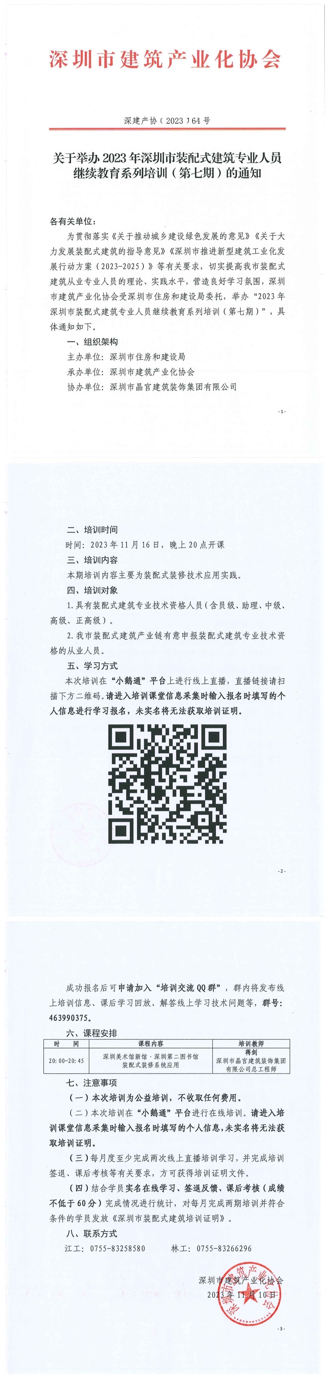 关于举办2023年深圳市装配式建筑专业人员继续教育系列培训(第七期)的通知
