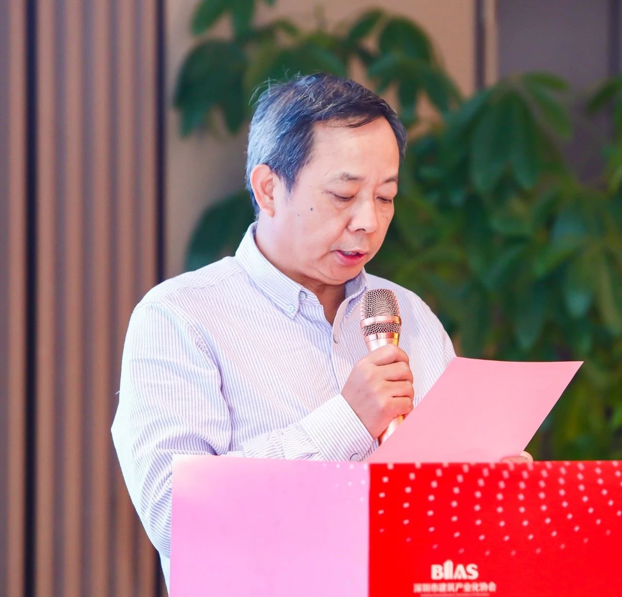 ▲协会副会长、深圳市建筑科学研究院股份有限公司副董事长陈泽广宣读2023年下半年新申请入会会员名单