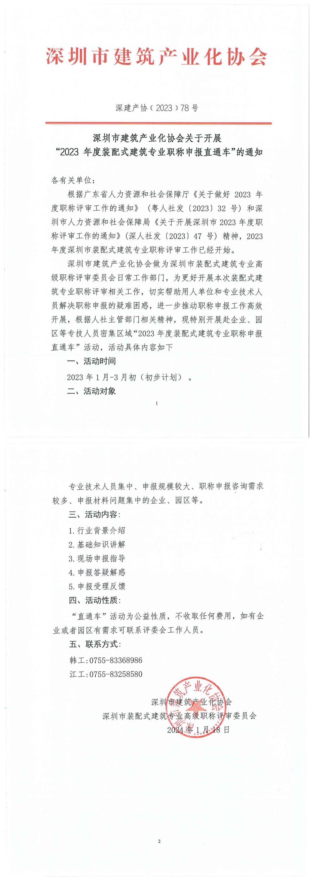 深圳市建筑产业化协会关于开展 “2023 年度装配式建筑专业职称申报直通车”的通知