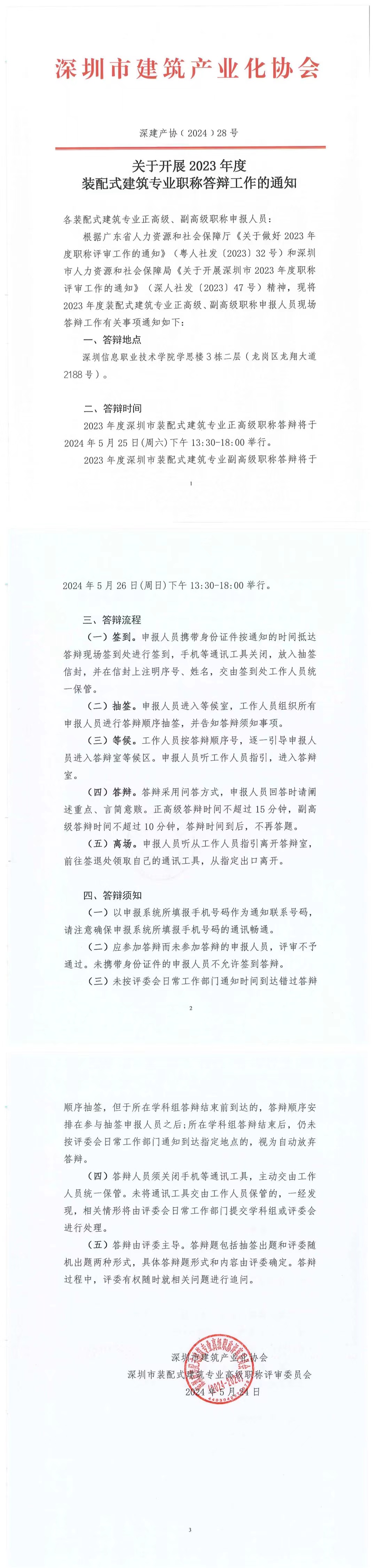 关于开展 2023 年度装配式建筑专业职称答辩工作的通知