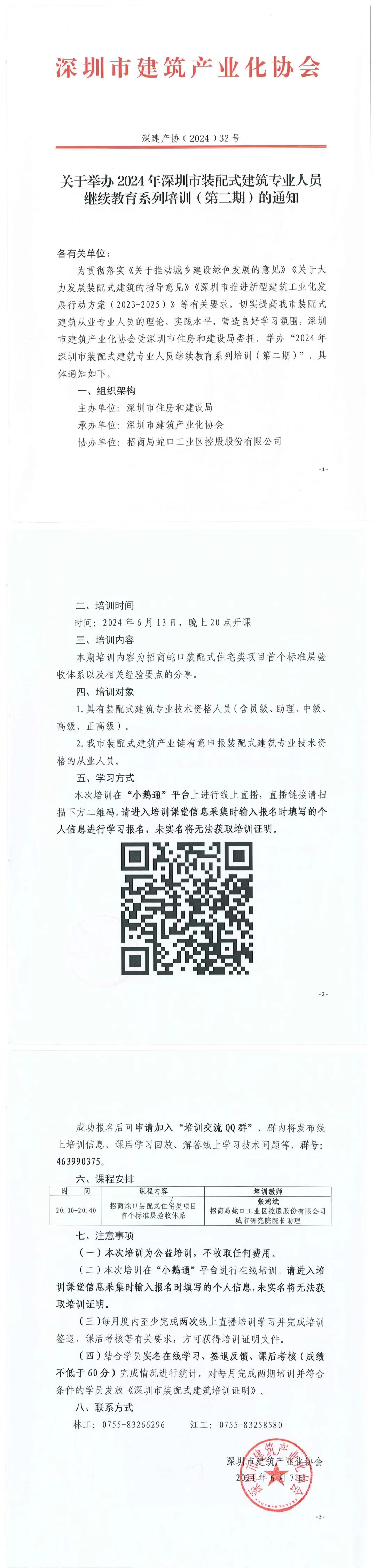 关于举办2024年深圳市装配式建筑专业人员继续教育系列培训(第二期)的通知