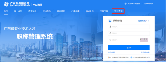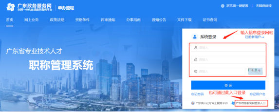 一、请使用 IE8 及以上浏览器登录“广东省政务服务网”进入“广东省专业技术人才职称管理系统”,或者通过登录深圳市人才一体化综合服务平台跳转到此网站。