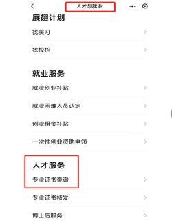 二、选择人才服务→专业证书查询→专业技术资格证书。