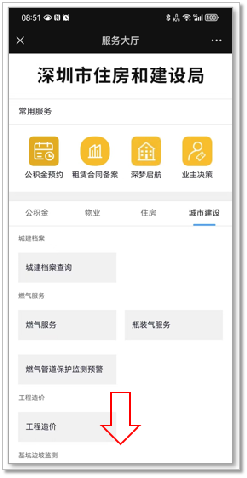 1.关注“深圳市住房和建设局”微信公众号,点击“业务办理”菜单;