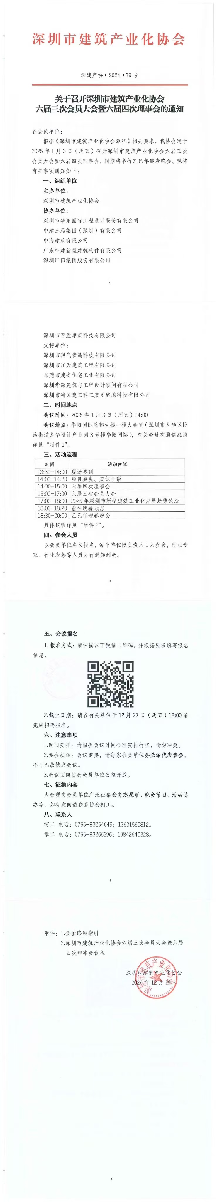 关于召开深圳市建筑产业化协会六届三次会员大会暨六届四次理事会的通知