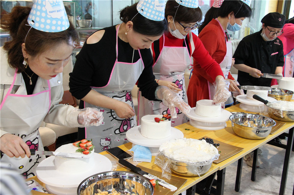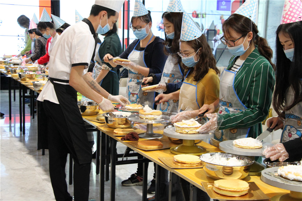 白色的面粉掺着黄油和牛奶的甜香,新鲜的水果点缀在抹了奶油的蛋糕体上……一个个精致可口的蛋糕就这样在大家的巧手下出炉了。每人手持一支散着淡香的玫瑰,口品一杯淳甘馥馥的红酒,大家都卸下往日的忙碌,将所有的烦恼与压力都抛到九霄云外,徜徉在一片欢乐温馨的海洋里。