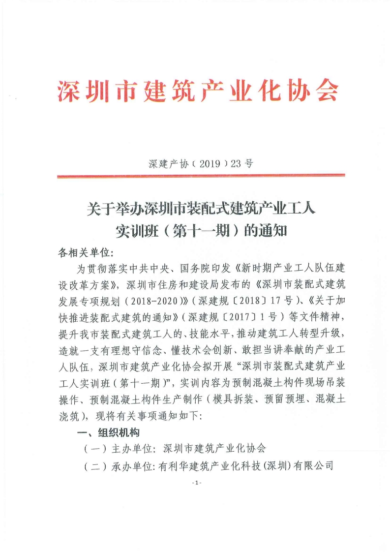 关于举办深圳市装配式建筑产业工人实训班(第十一期)的通知